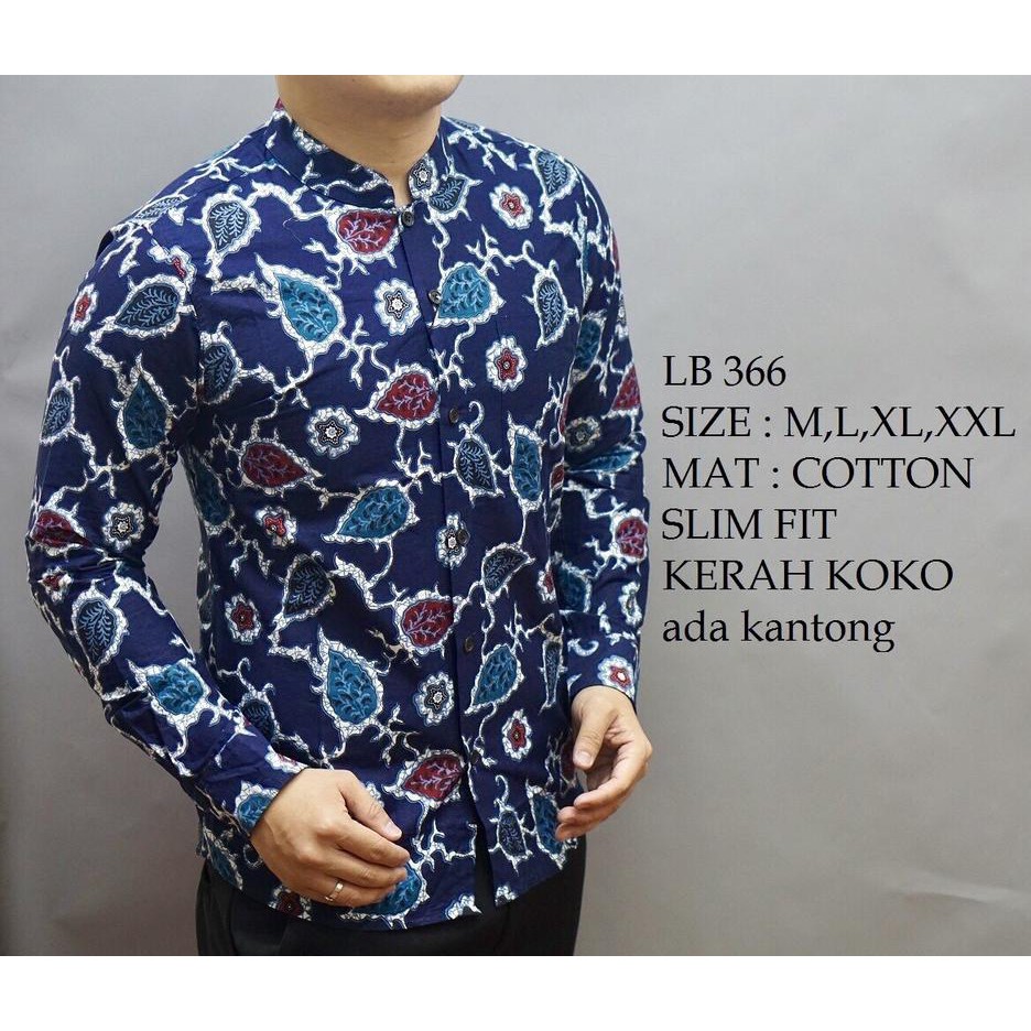 Baju Batik Pria Slim Fit Kerah Shanghai Koko Shopee Indonesia